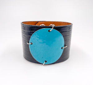 SALE Ocean on Sky Blue Marked Lizard skin narrow Enamel Cuff