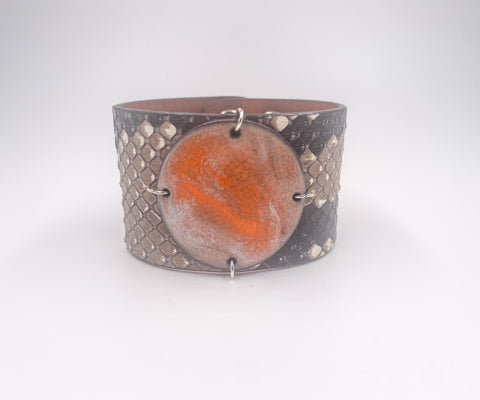 SALE Sherbet on Natural Python skin narrow Enamel Cuff